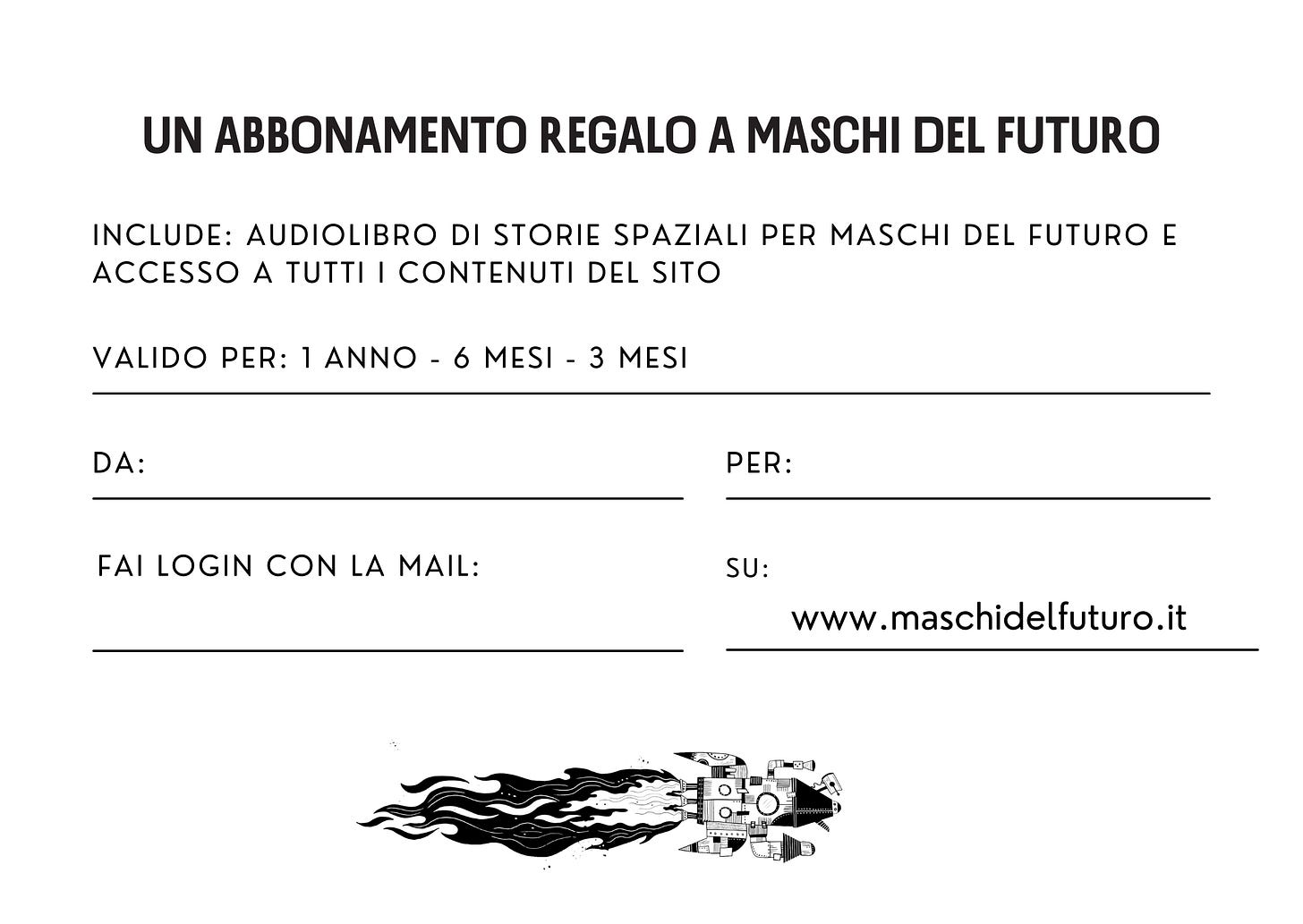 Se vuoi regalare un abbonamento a Maschi del Futuro per Natale, clicca qui! Stampa le immagini qui sotto e contribuisci a far crescere questa comunità.